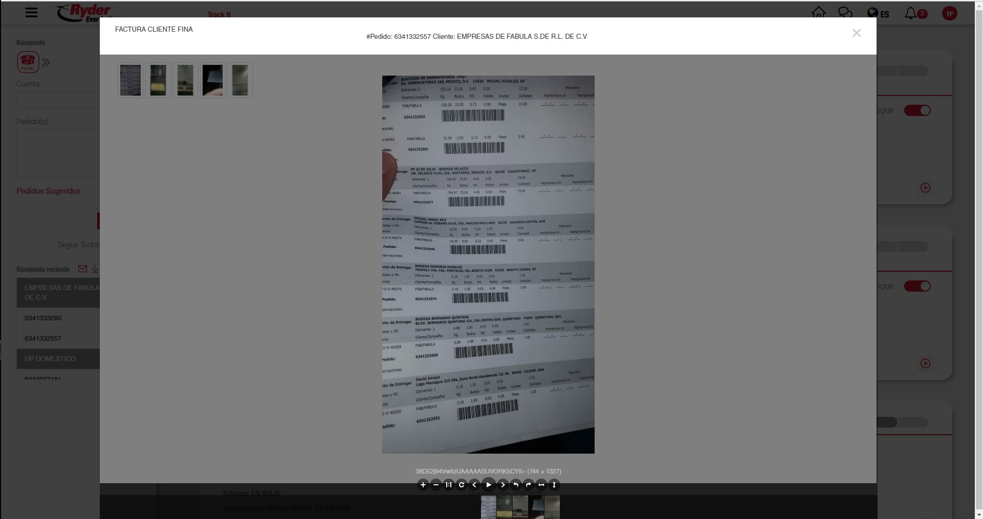 Se mostrarán los documentos o imágenes que contiene el pedido, en el