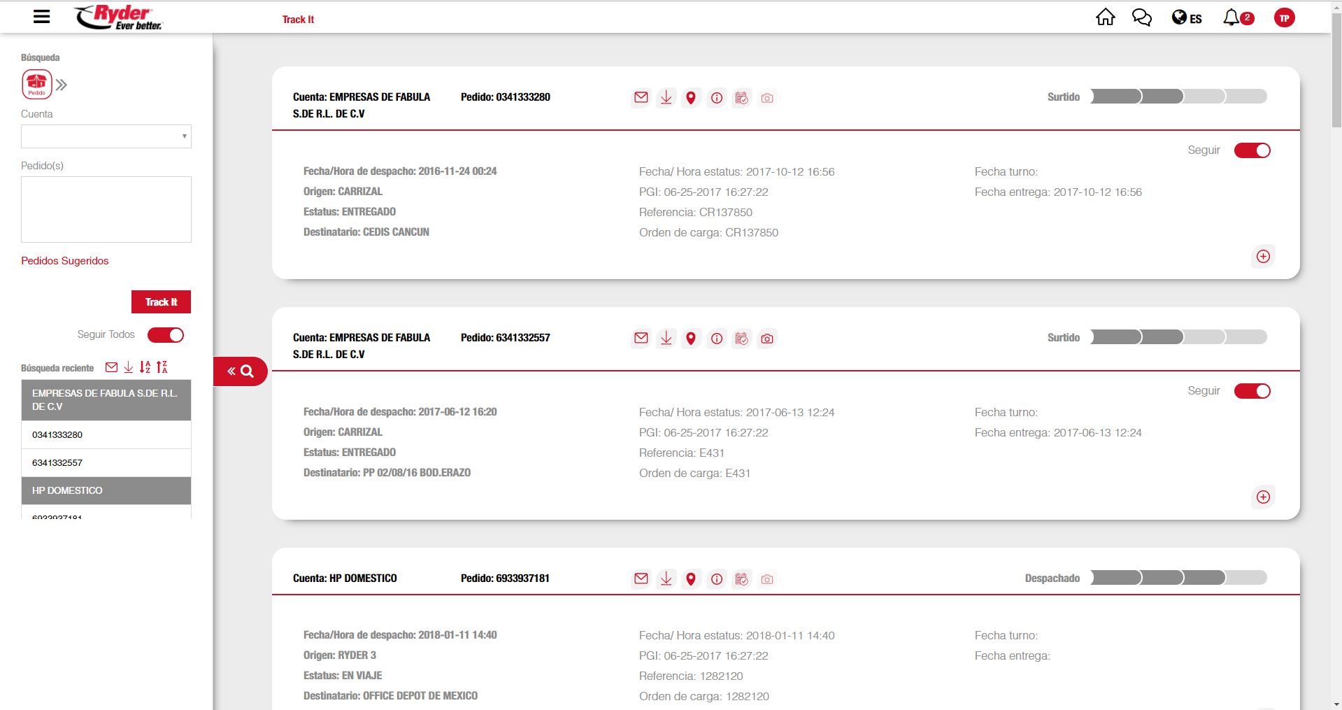 El usuario al encontrarse posicionado sobre los resultados de búsqueda de pedidos deberá dar clic sobre el icono "Cámara" que se localiza en la parte superior de cada uno de los resultados.