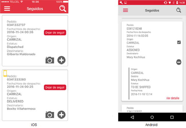 - Si el usuario sigue a un pedido, se mostrará la pantalla Seguidos ubicada en el pedido consultado.