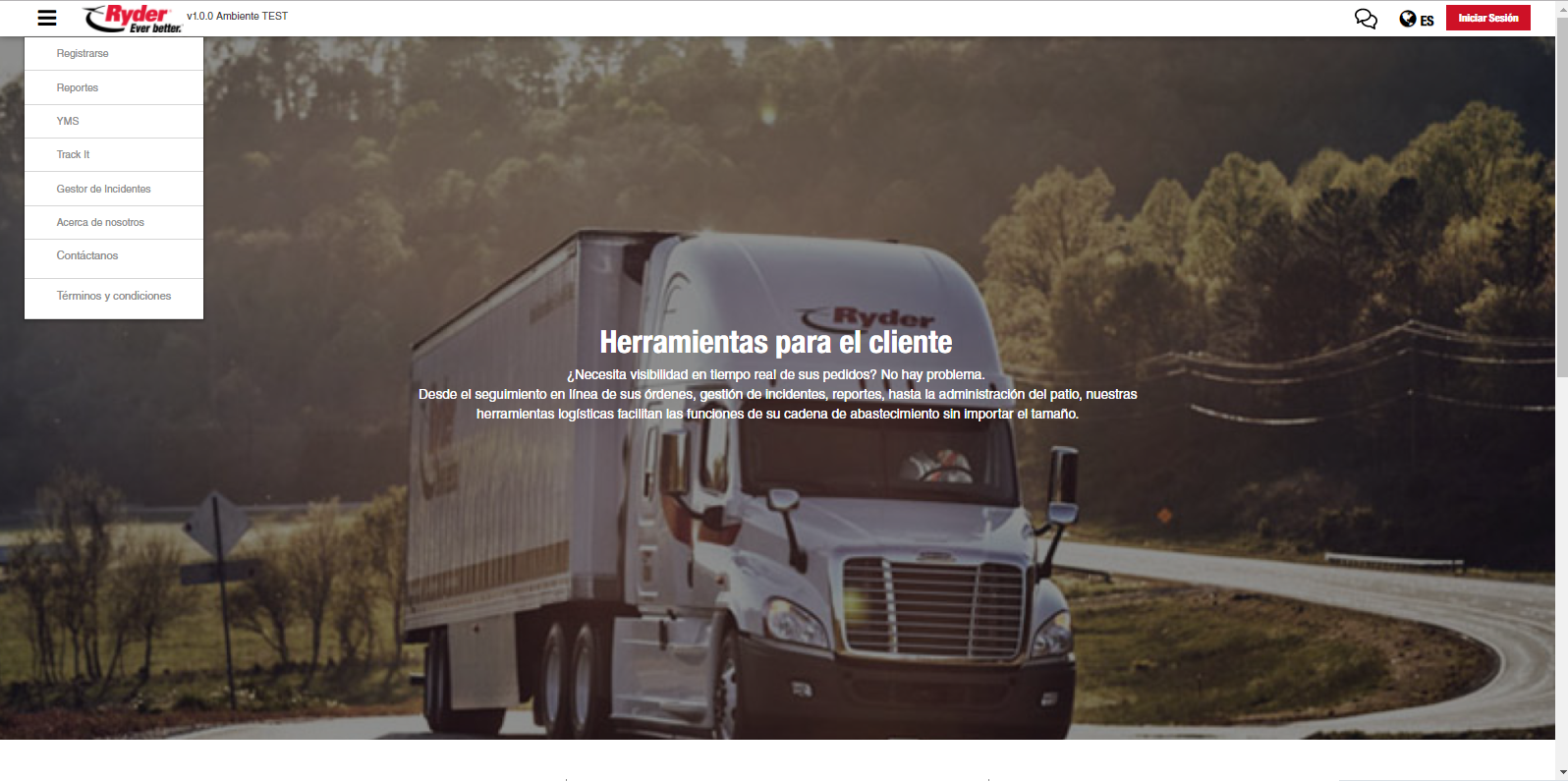 - El usuario deberá encontrarse posicionado sobre la pantalla principal de Track & trace web y deberá realizar scroll hacia la parte inferior de la página. Se visualizarán los accesos a los siguientes sistemas: Track and Trace, Reportes, YMS, Track it, Incident Management. El usuario deberá dar clic sobre la sección "Reportes".