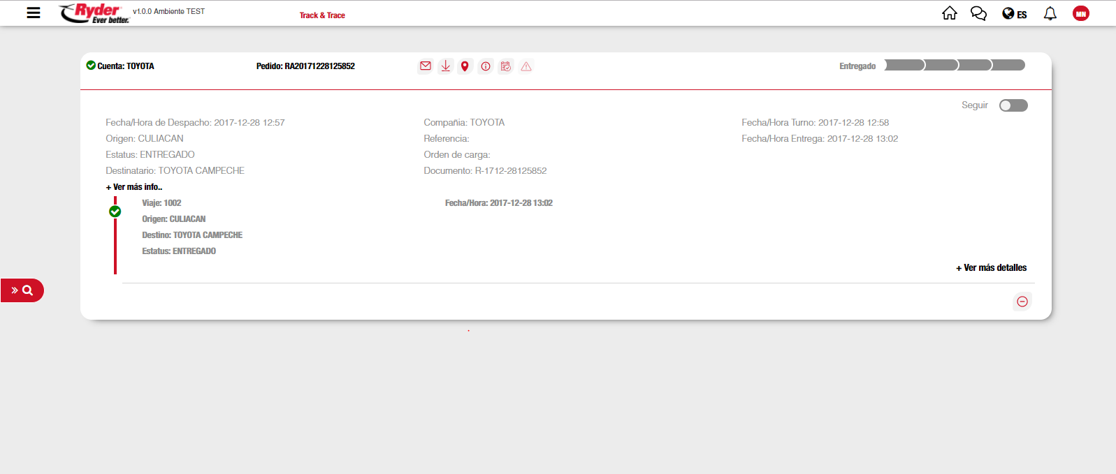 En caso de que el pedido cuente con estatus "Entregado" y todos sus viajes han sido "Rendidos", se mostrará el check mark verde en el pedido y en cada viaje.