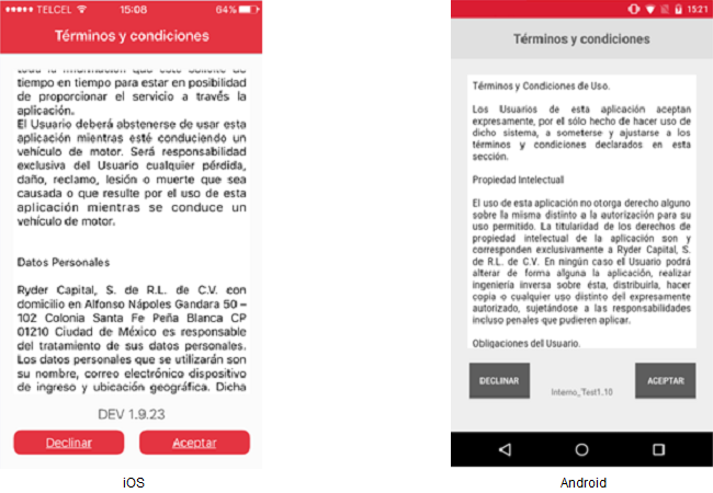 El usuario deberá visualizarcaptura la pantallainformación anteriorque porse unpide lapsopara la creación de 2una segundosnueva ycuenta posteriormentede deberá visualizar la pantalla Términos y Condiciones: