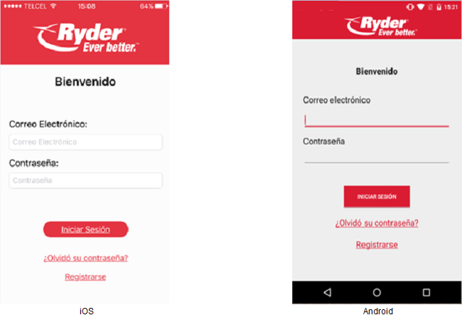 Playcuenta,Store o App Store dependiendo de la marca del dispositivo móvil con el que cuente e instalar la aplicación Ryder Track & Trace. Posteriormente deberá presionar el icono de la aplicación y esta acciónse mostrará lasiguientepantallapantalla:de "Ingresar PIN" con opciones de "¿Olvidó su PIN?", "Restablecer PIN" y "Registrarse", donde podrá presionar sobre la opción "Registrarse.