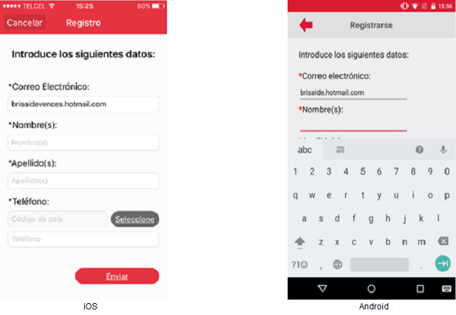 De las dos maneras diferentes, se podrá visualizar la pantalla "Registro" donde el usuario podrá capturar la información necesaria.