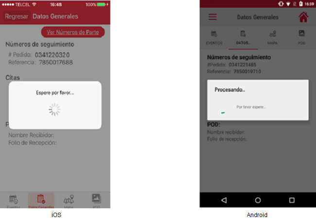 • Si el usuario no sigue a ningún pedido, se mostrará la pantalla Búsqueda con la opción pedido asignada por default.