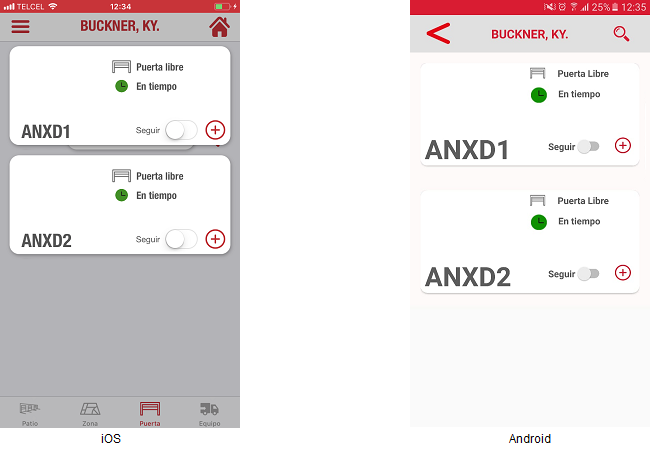 Al seleccionar la puerta deseada, se mostrará el detalle de la puerta seleccionada con la opción para seguirla (si ya se sigue, se mostrará activado el switch "Seguir"
