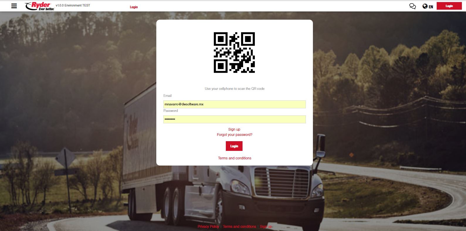 - Independientemente de la pantalla en la que se encuentre el usuario, deberá dar clic en el botón [Iniciar sesión] y se mostrará la pantalla de login en donde el usuario deberá dar clic sobre el texto "Términos y condiciones" ubicado sobre la parte inferior del botón [Iniciar sesión].