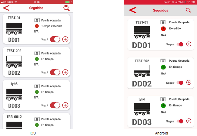 - Caja trailer o caja sola con su color de estatus