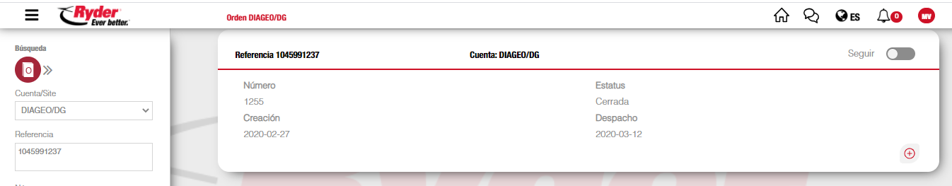 El usuario puede seguir la orden activando el switch “Seguir” y en caso de que el usuario ya siga la orden se muestra el switch “Seguir” habilitado.