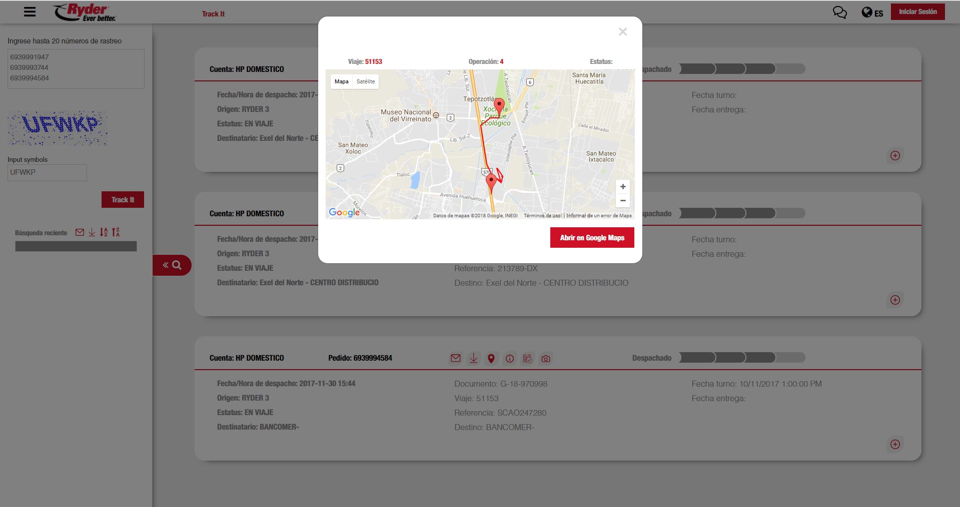 En caso de que el usuario desee manipular el tamaño del mapa, deberá dar clic en el botón [Abrir en google maps]. Se mostrará una ventana nueva en el navegador con losel puntospunto de ubicacióndestino del pedido.