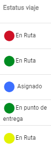 Verde: El tipo de unidadviaje se encuentra en ruta o con un viaje asignado.ruta.