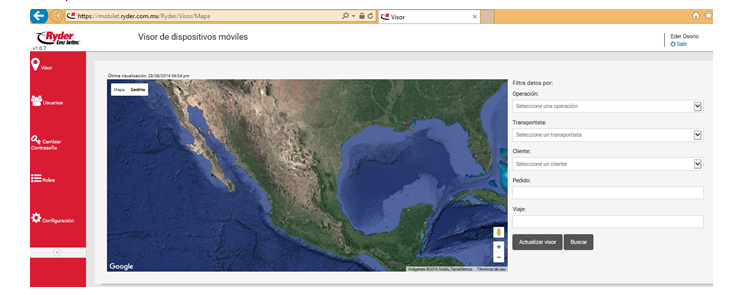 El usuario deberá iniciar sesión, después deberá dar clic en la opción “Visor” y esta acción muestra la ventana Visor de Dispositivos Móviles.