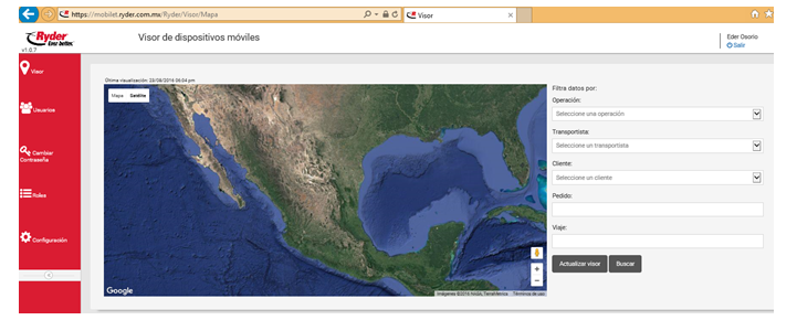 El usuario deberá iniciar sesión, después deberá dar clic en la opción “Visor” y esta acción muestra la ventana Visor de Dispositivos Móviles.