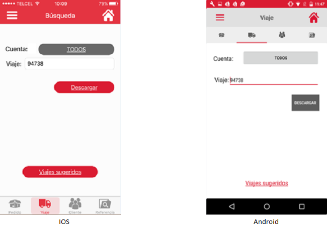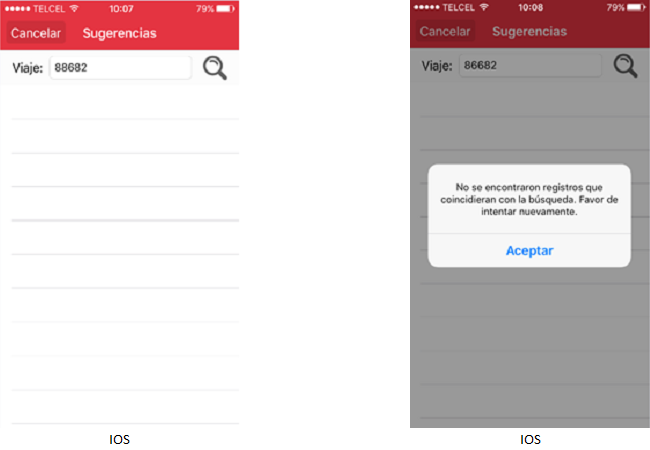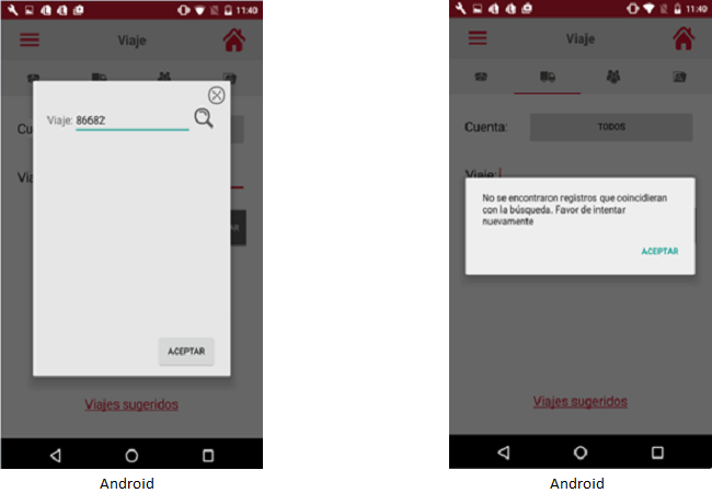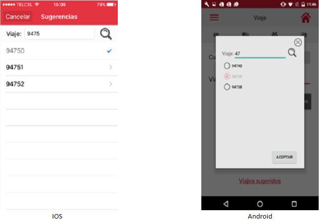 Si el usuario no conoce el número exacto del viaje podrá capturar una parte del número y la aplicación irá mostrando las coincidencias. El usuario deberá seleccionar el viaje de su interés.