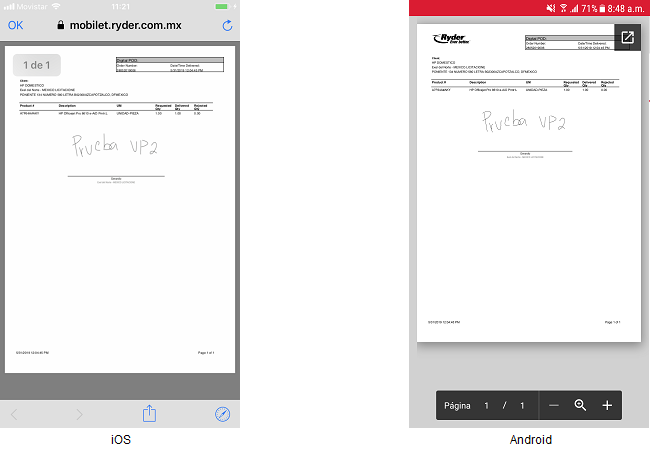 El usuario presiona sobre el botón y se abrirá un web view mostrando el archivo .pdf perteneciente a la firma digital del pedido.