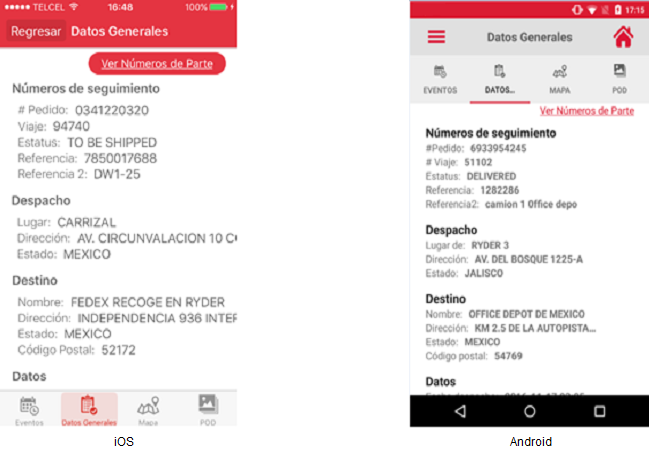 -       El usuario deberá visualizar los datos generales por viaje presionando en la opción "Ver detalle", mostrando la nueva opción "Ver Números de Parte" y podrá presionar sobre ella.