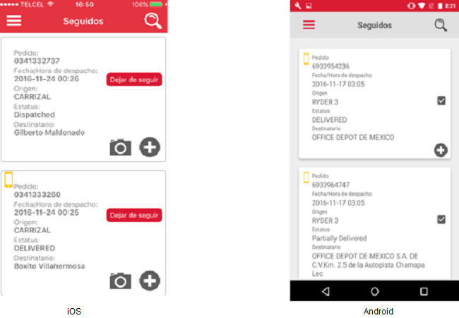 Si el usuario no sigue a ningún pedido, se mostrará la pantalla "Búsqueda por pedido" asignada por default.