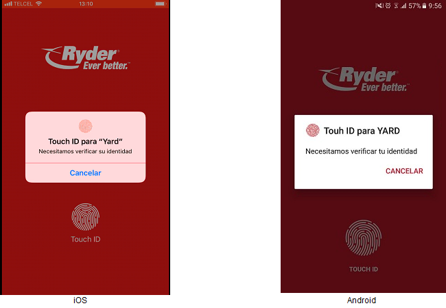 - Si no es la primera vez que el usuario ingresa y tiene configurado el Touch ID, se muestra la pantalla para capturar la huella.