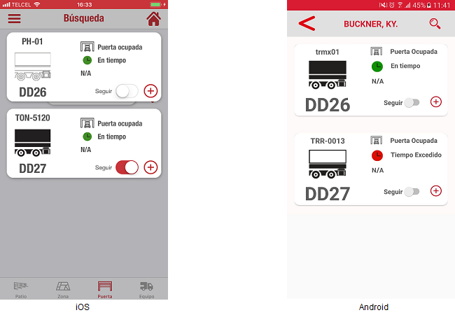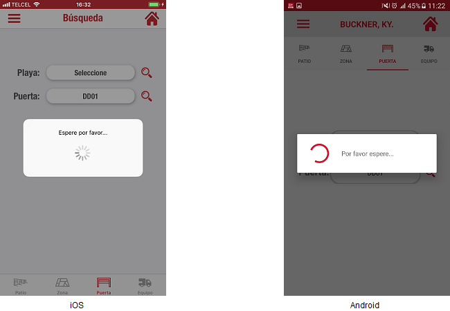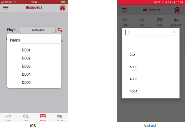 El usuario puede cerrar el detalle presionando en cualquier parte de la pantalla, mostrándose la pantalla "Búsqueda por puerta".