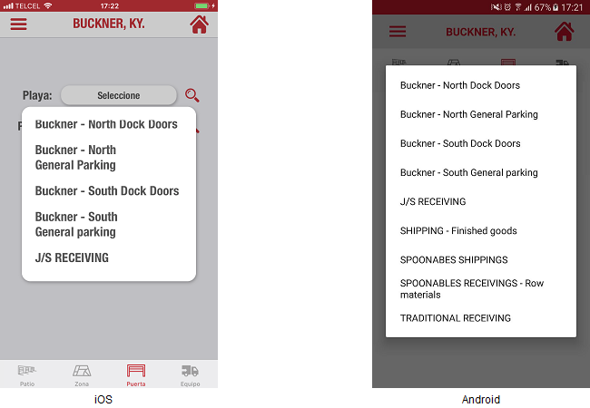 NOTA: La selección de una playa es opcional, el usuario puede únicamente seleccionar una puerta, presionar el icono "Lupa" y se mostrará el detalle de la puerta.