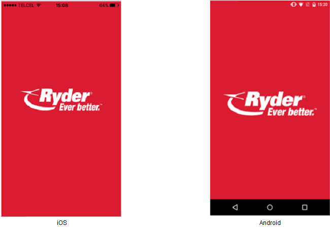 El usuario deberá presionar el icono de la aplicación y esta acción mostrará la pantalla con logo "Ryder"
