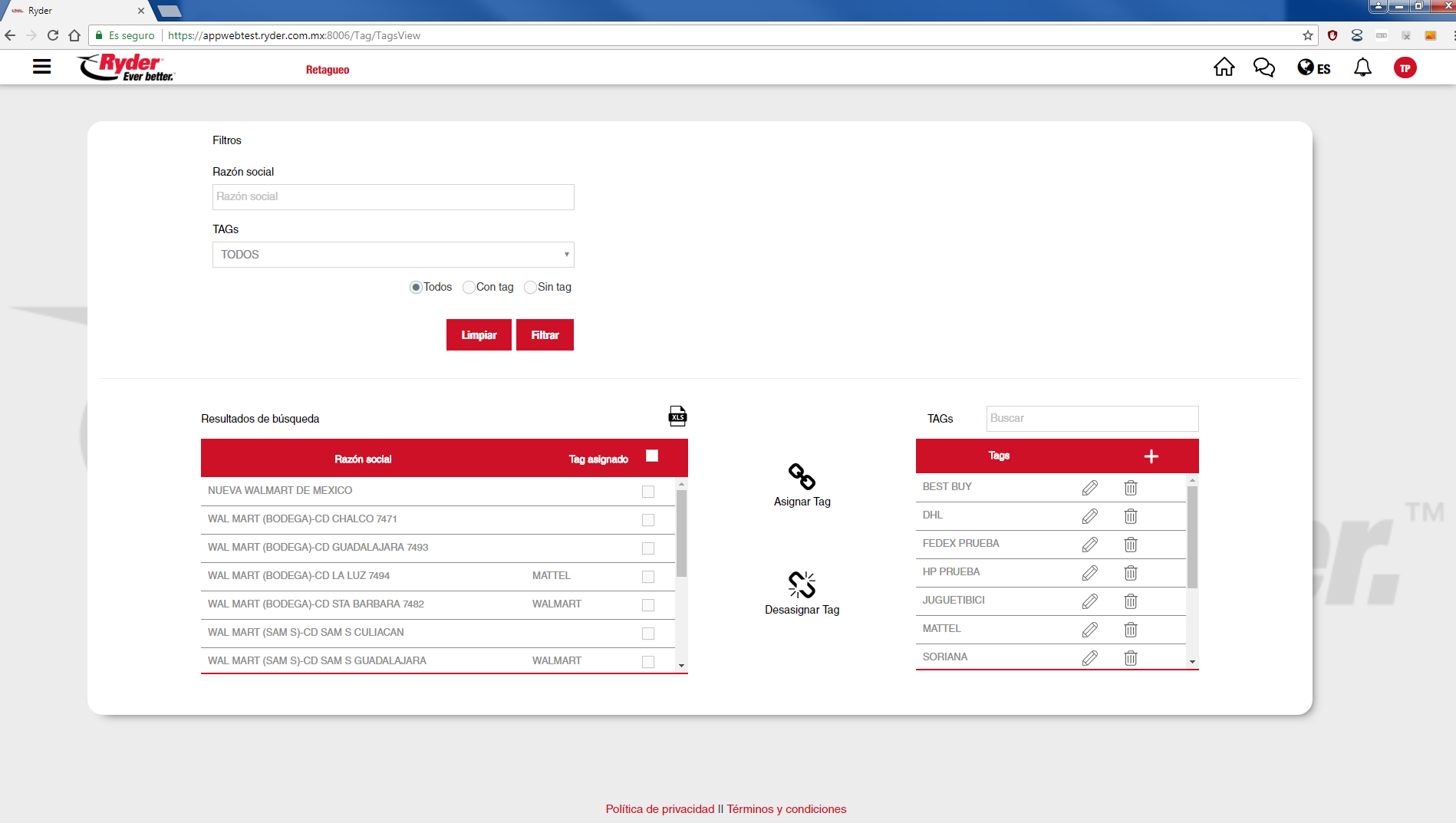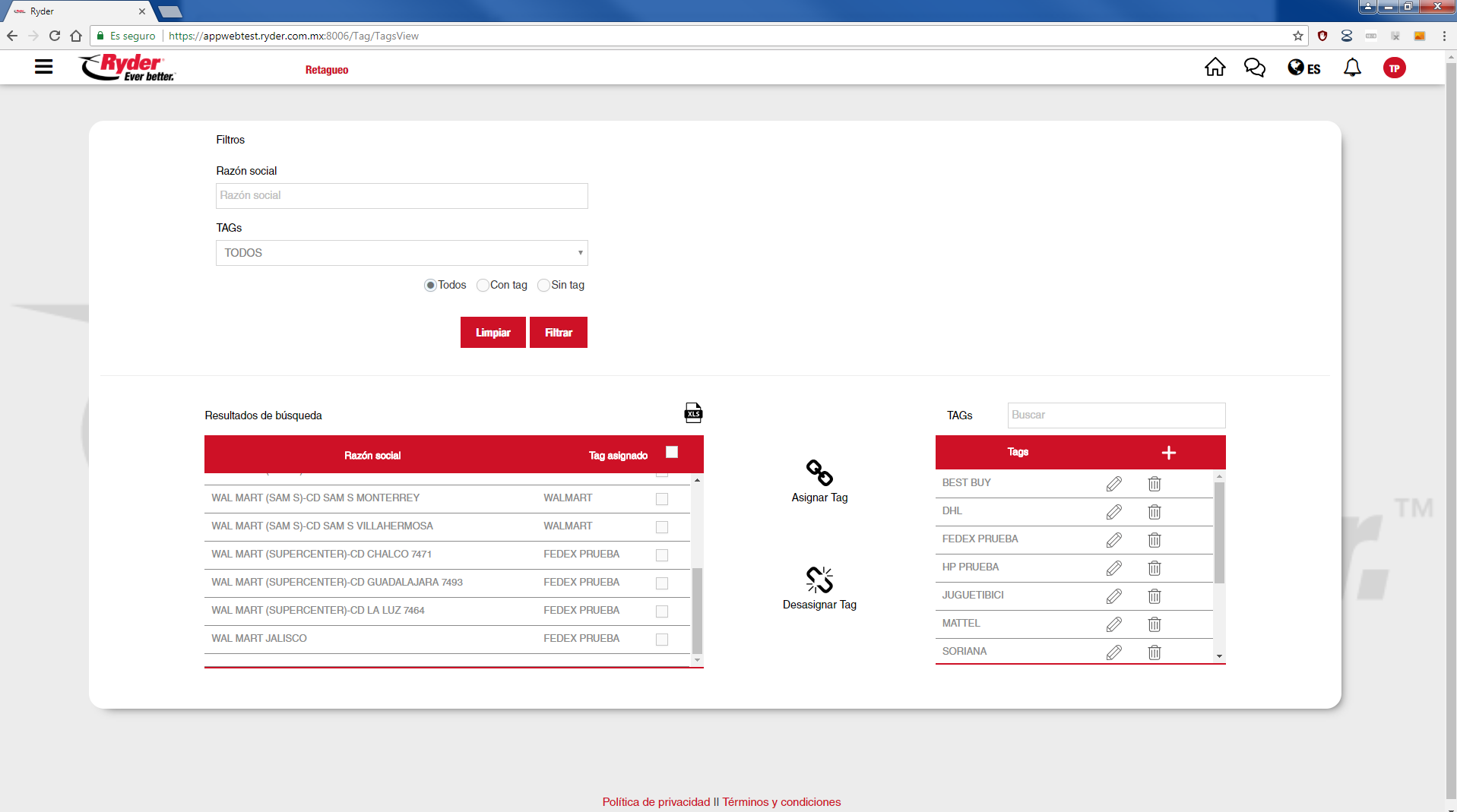Para editar un tag, el usuario debe dar clic en el icono [lápiz] que aparece en el renglón de uno de los tags ya existentes.