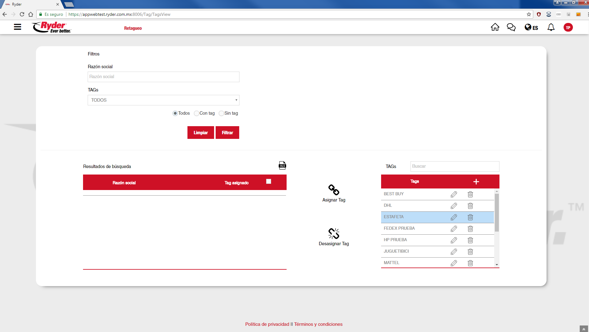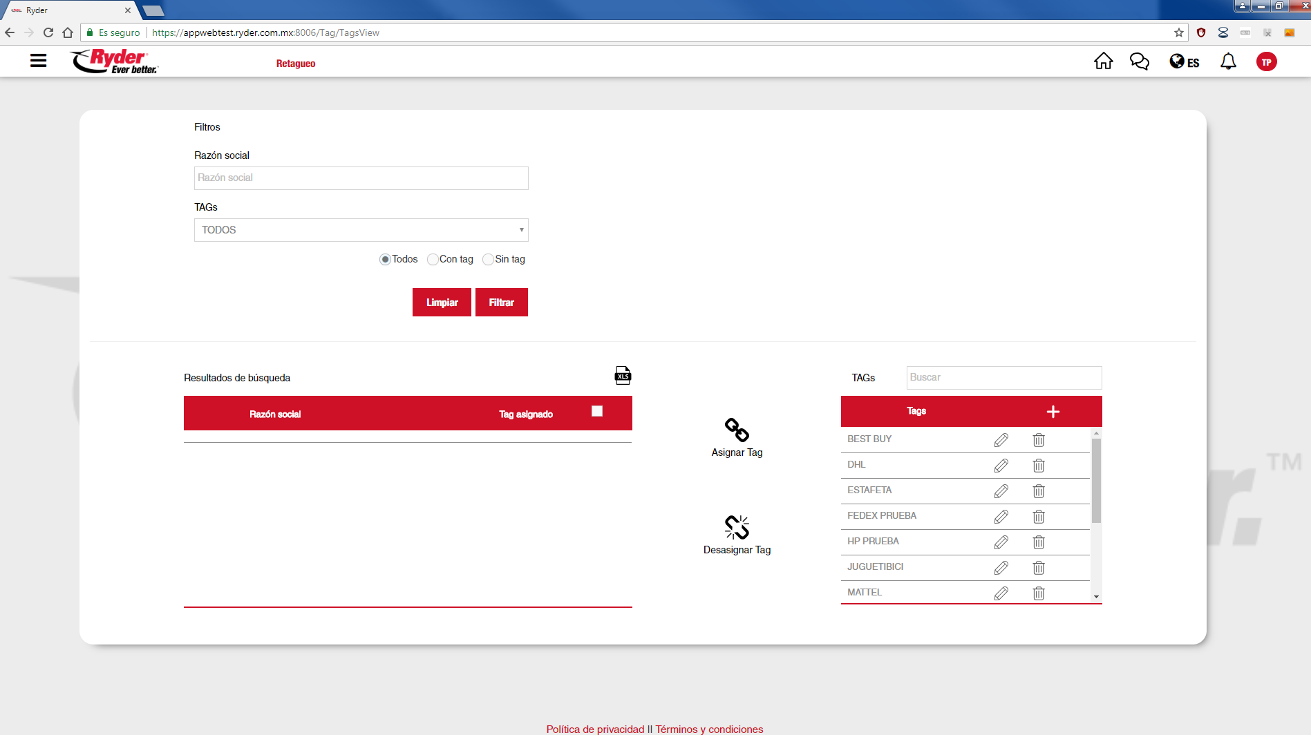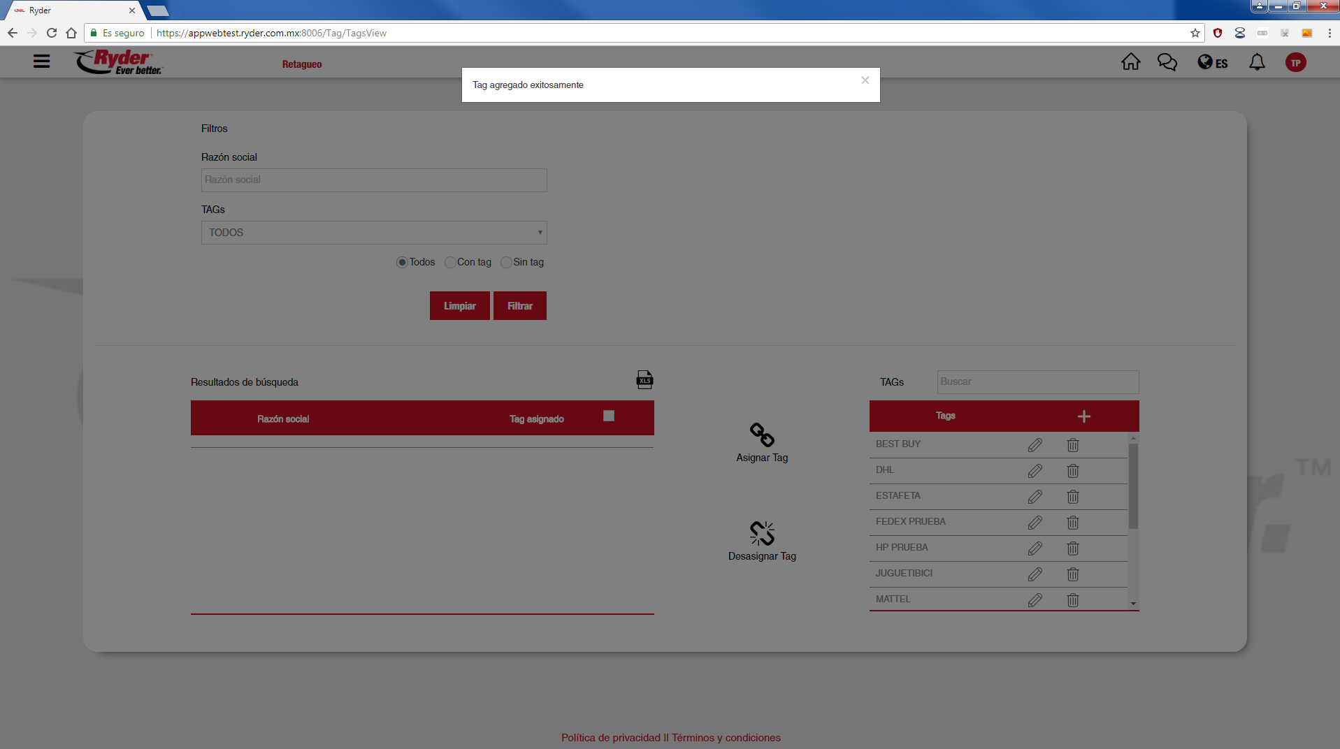 Al eliminarse el tag correctamente, los resultados de la búsqueda se actualizarán, eliminando el registro de ese tag.