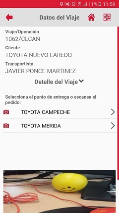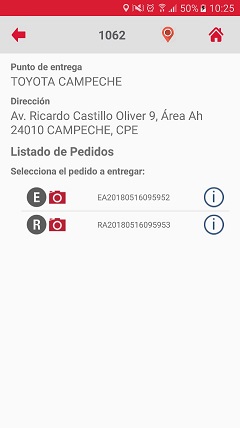 Al estar en la pantalla donde se muestran los datos del viaje, el usuario podrá seleccionar un punto de entrega y se visualizará la pantalla "Pedidos".