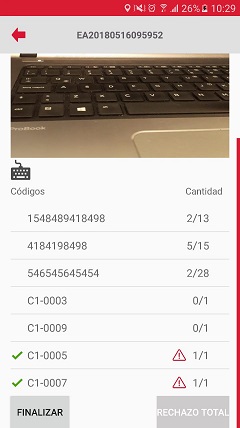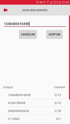 El usuario podrá escanear los códigos mostrados en la lista y la columna "Cantidad" se actualizará aumentando el contador en cada número de parte escaneado.