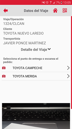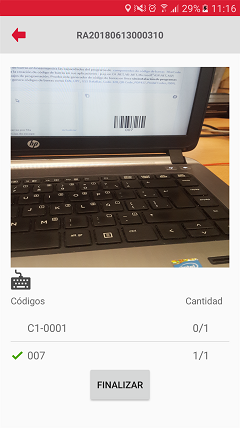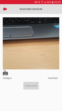 Al finalizar el escaneo, el usuario deberá presionar sobre el botón "Terminar" y se mostrará la pantalla para capturar fotografías como prueba de entrega.