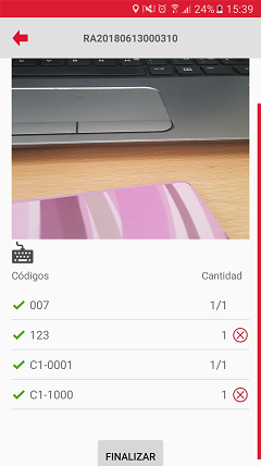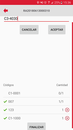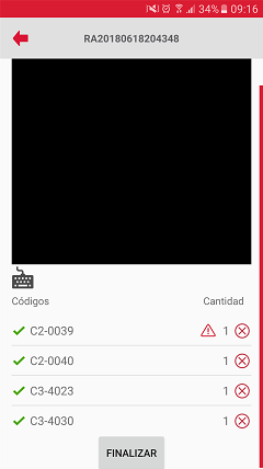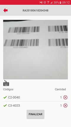Cada código escaneado podrá ser eliminado de la lista al presionar el icono de "X" al final del renglón de cada código.