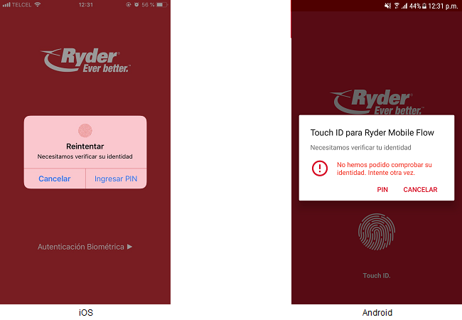 En caso de que el sensor biométrico no pueda ser leído o no coincida con el que se encuentra configurado en el dispositivo, se mostrará un mensaje “No hemos podido comprobar su identidad. Intente otra vez.”.
