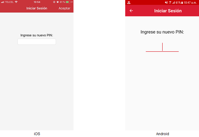 Al terminar de ingresar el nuevo PIN, se muestra la pantalla para ingresar la confirmación del PIN nuevo.