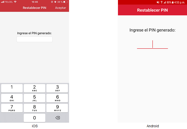 El usuario puede presionar sobre la opción “Restablecer PIN” que se encuentra en la pantalla "Ingrese PIN".