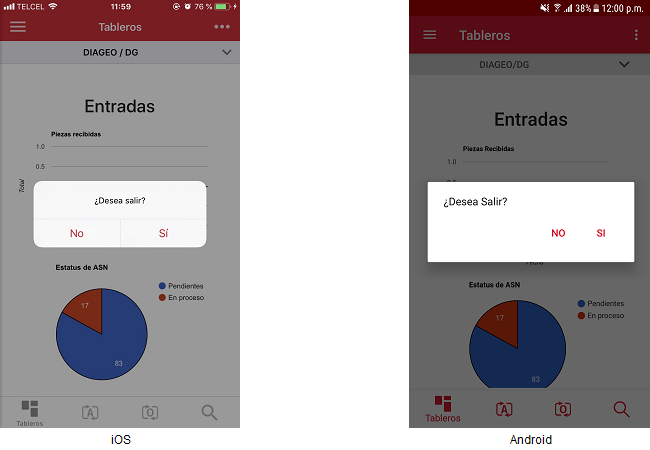 b) Si el usuario presiona sobre la opción “Si”, la aplicación se cerrará, mostrando la pantalla de inicio del dispositivo.