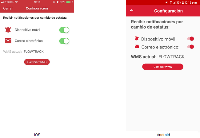 Se puede configurar la recepción de notificaciones habilitando el switch de cualquiera de las opciones o ambos switches.