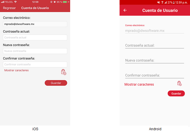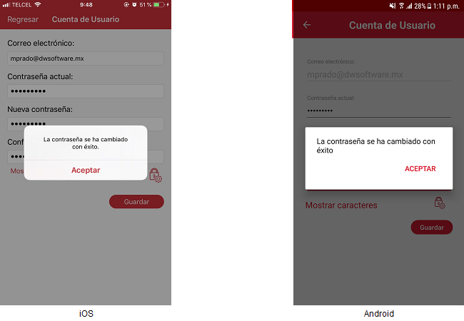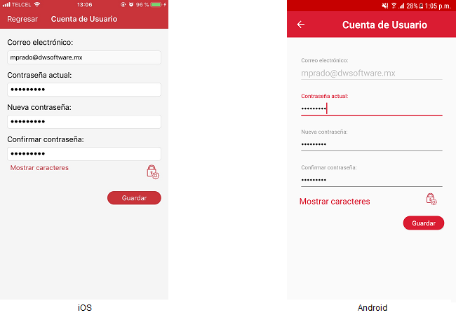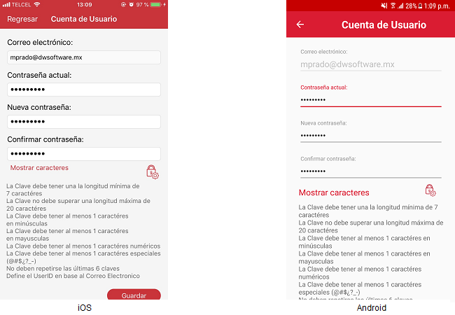 El usuario puede cambiar la contraseña actual al presionar sobre la opción [Cambiar Contraseña]