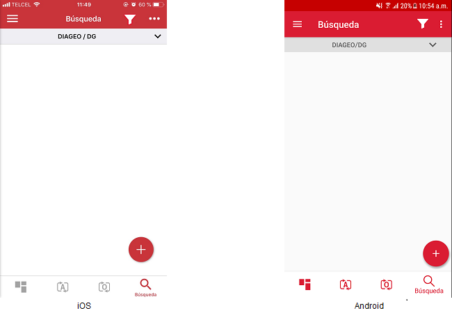 El usuario presiona sobre el botón flotante de búsqueda y se visualizan las opciones de búsqueda.