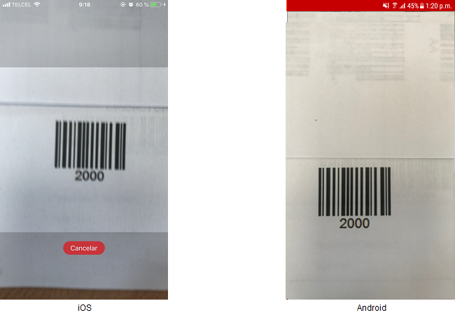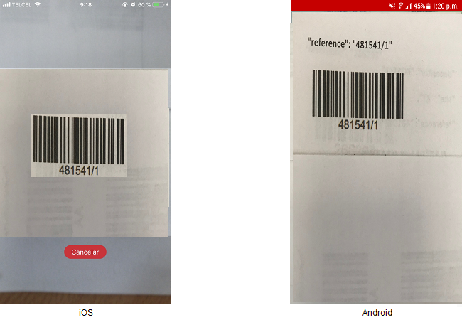El usuario tiene opción de realizar lecturas de códigos de barras de ASN, al presionar sobre el icono de “código de barras”, abriéndose la cámara del dispositivo.
