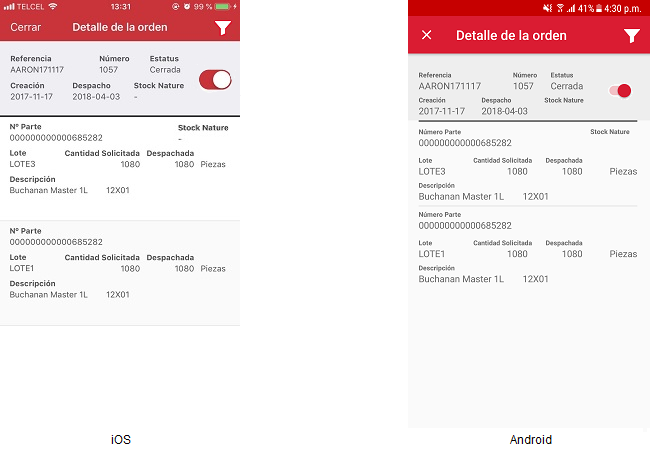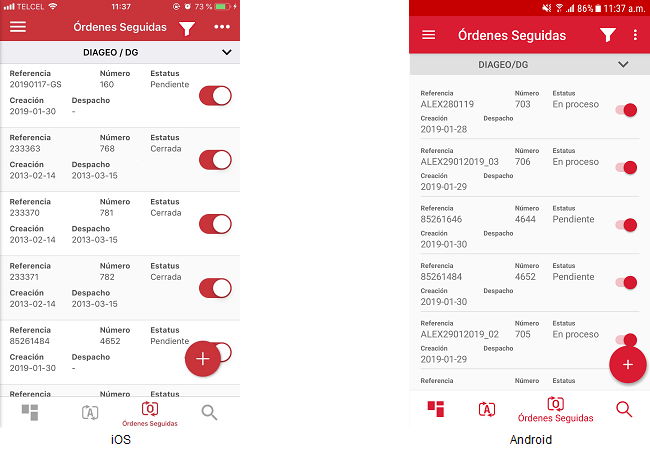 El usuario puede seguir la orden activando el switch “Seguir” y en caso de que el usuario ya siga la orden se muestra el switch “Seguir” habilitado.