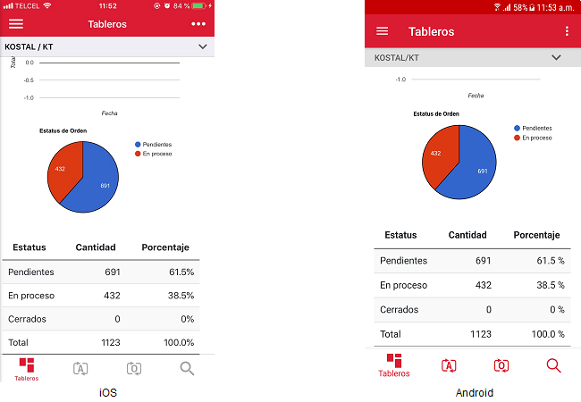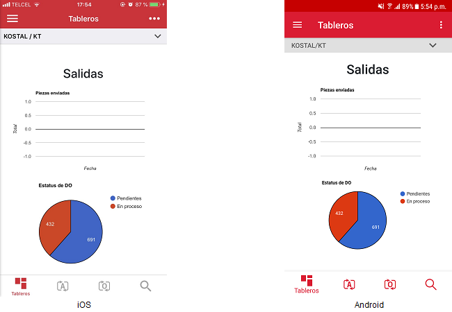 El usuario elige el tablero “Salidas” y la aplicación muestra un gráfico que contiene la siguiente información de Órdenes: