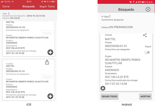 • El usuario selecciona la cuenta y escribe el pedido a buscar.