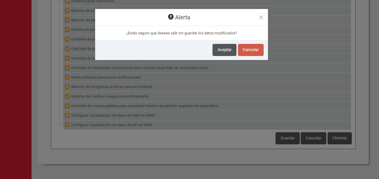 El usuario da clic al botón [Cancelar] si no desea guardar los cambios, se limpiarán los cambios seleccionados.