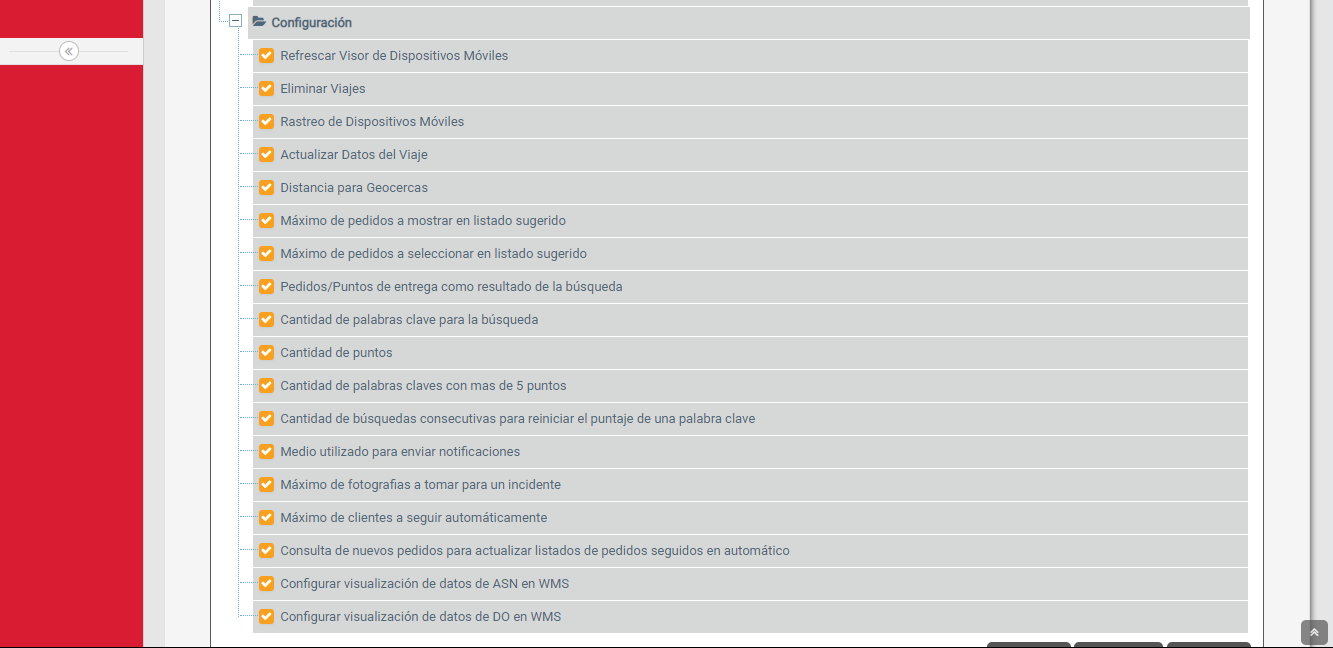 El usuario se posiciona en la sección “Configuración” y da clic sobre el permiso de ASN/Orden. IMPORTANTE: El usuario puede seleccionar un permiso ya sea para ASN, orden o incluso ambos.