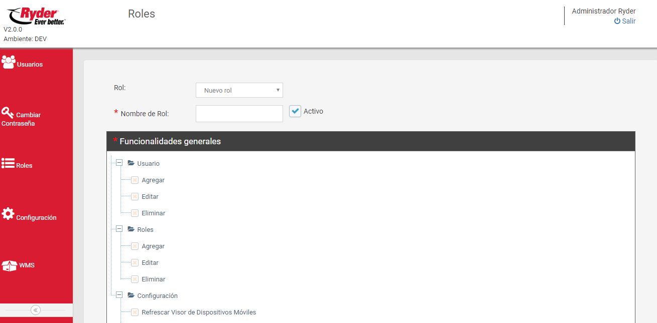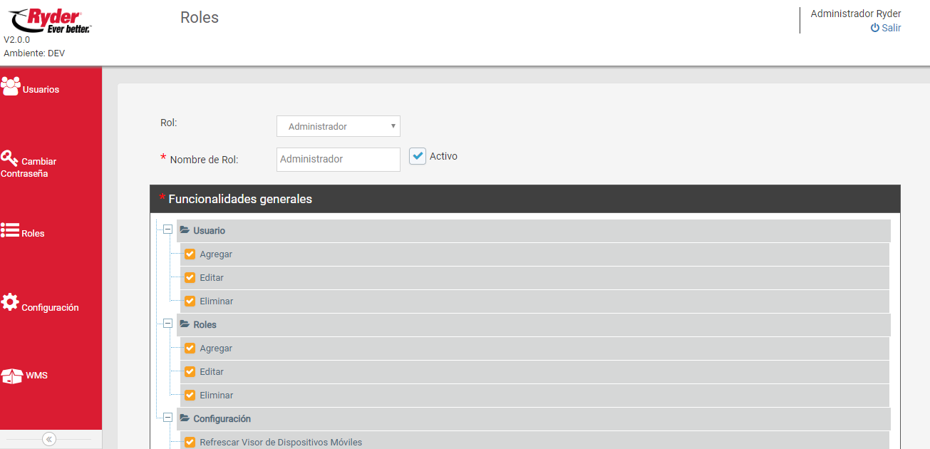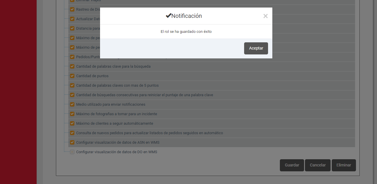 El usuario puede seleccionar el tipo de rol al que desea asignarle los permisos para modificar la visualización de datos en WMS.
