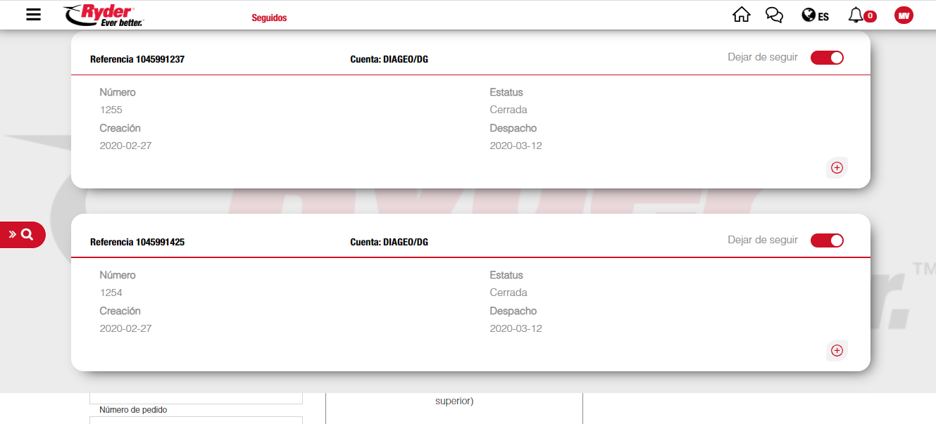 Se visualizará la pantalla principal de la aplicación, siendo la pantalla de búsqueda por Órdenes o la pantalla de Órdenes Seguidas si el usuario cuenta con una o varias órdenes seguidas.