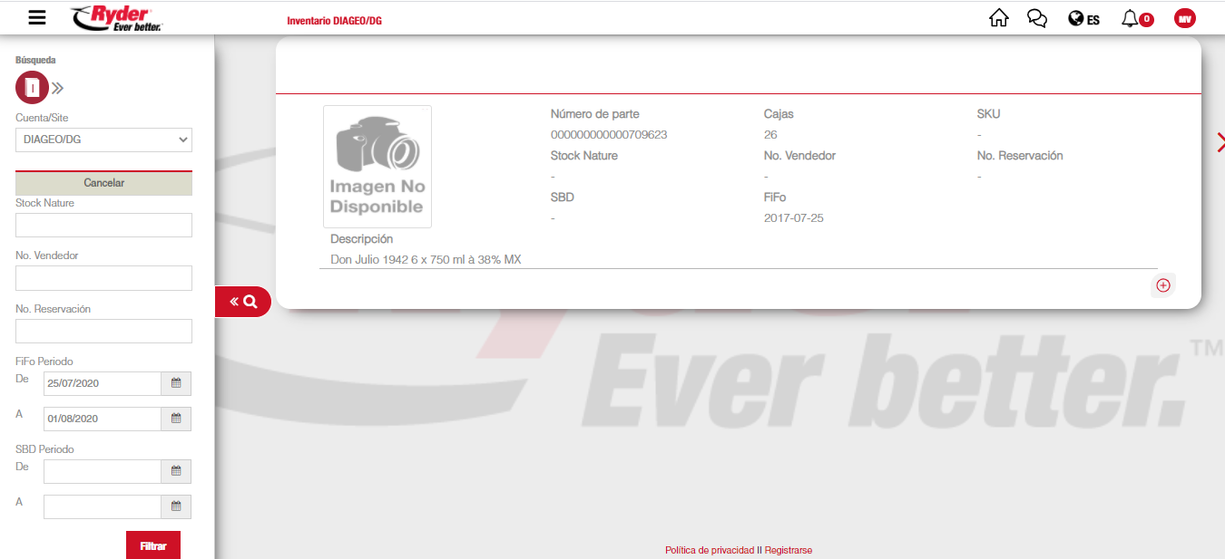 Al terminar de ingresar la información por la cual filtrar, se presiona el botón [Filtrar] y los resultados de la búsqueda se mostrarán filtrados de acuerdo a los criterios de filtros ingresados.