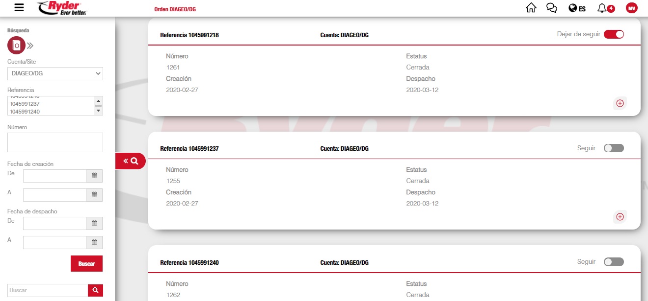 El usuario puede seguir la orden de su elección, activando el switch “Seguir” ubicado en la esquina superir derecha de la ficha , si la orden ya se sigue, se muestra el switch “Seguir” habilitado.