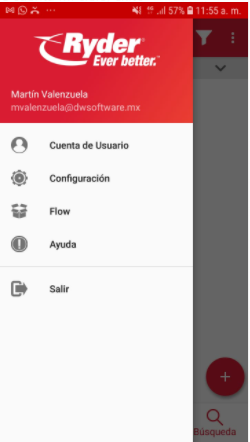 El usuario abre la APP de Mobile Flow y selecciona la opción de Flow, ubicado en el menú de hamburguesa.