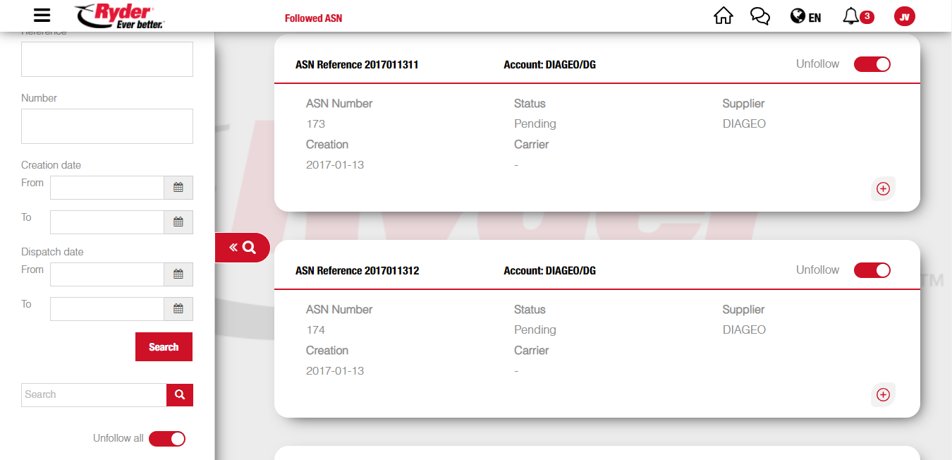 The user can follow all ASNs by clicking the "Follow all" option located in the bottom part of the search options.